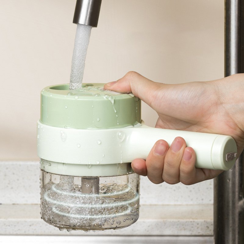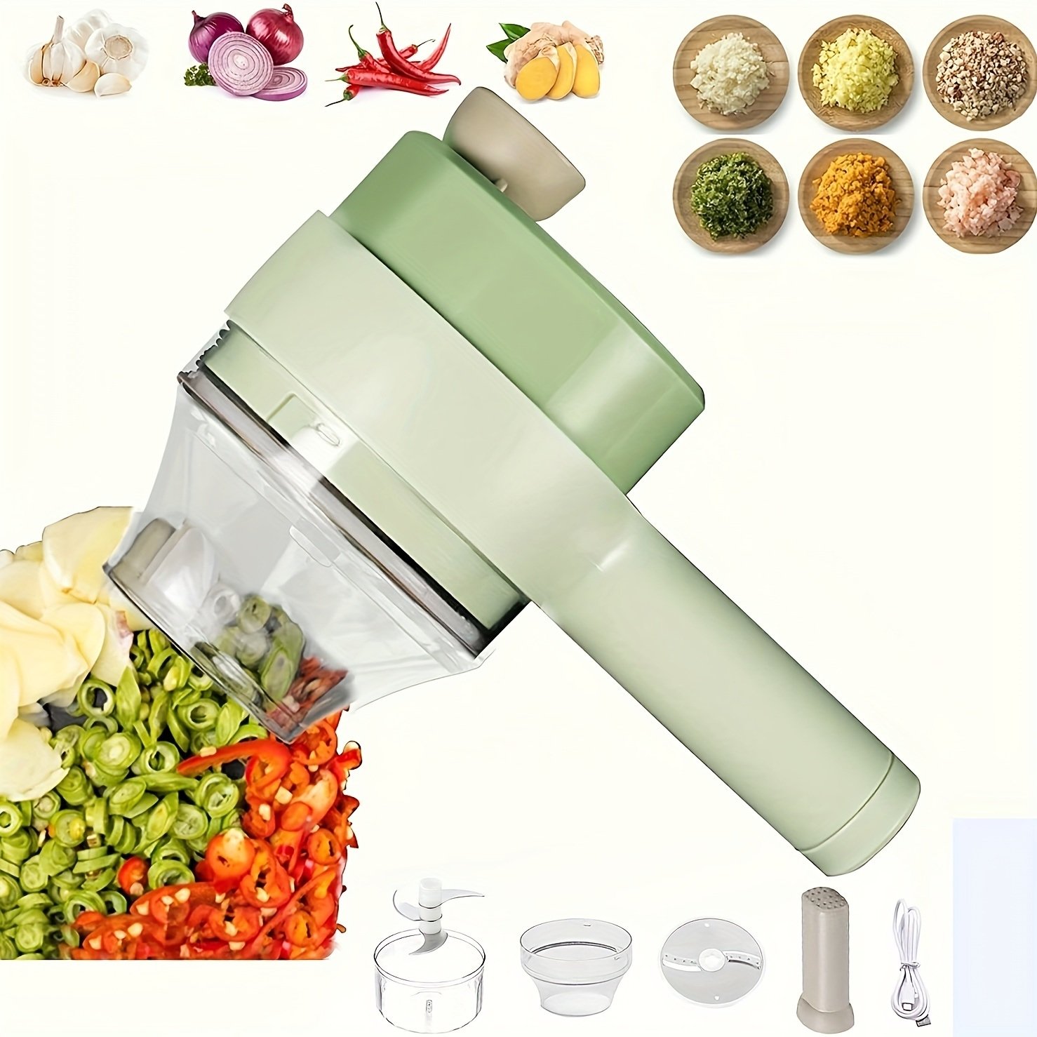 1pc 4 In 1 Vegetable Chopper Handheld Electric Vegetable Cutter Set Portable Wireless Garlic Mud Masher Garlic Press And Slicer Set