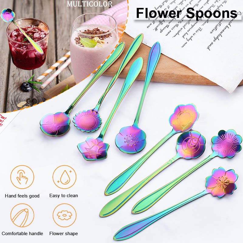 Wide range of uses: can be used as coffee spoon; stirring spoon; sugar spoon; stirring bar spoon; stirring spoon; tea spoon; ice tea spoon; ice cream spoon; very practical and practical Package Include: 8pcs different flower spoons About Shipping