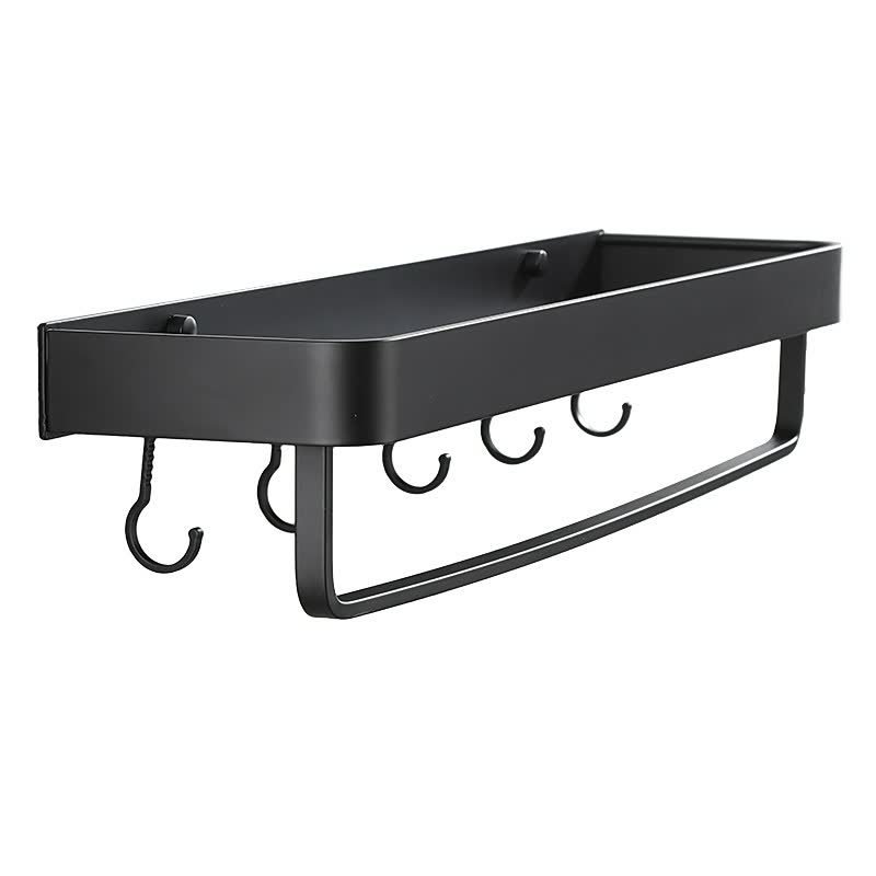 Home > Black Hook Frame Wall-mounted Kitchen Shelf Hanging Rod Space Aluminum Hanger Storage Rack Home Condiment Rack