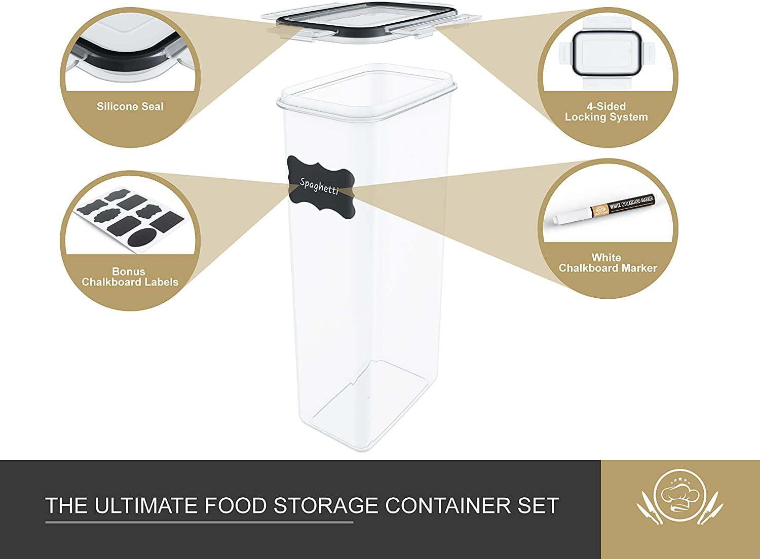 1.STORAGE CONTAINERS VERSATILE CONTAINERS : These hermetic food-safe are not only IDEAL for storing dry foods       such as pasta, spaghetti, noodles, flour, sugar, rice, grain