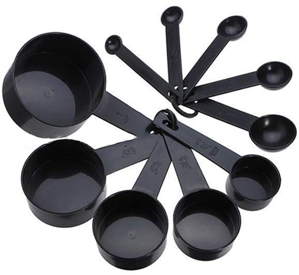 Measuring Set 10 pieces Black Plastic Measuring Spoons and Cups for Baking Tools
