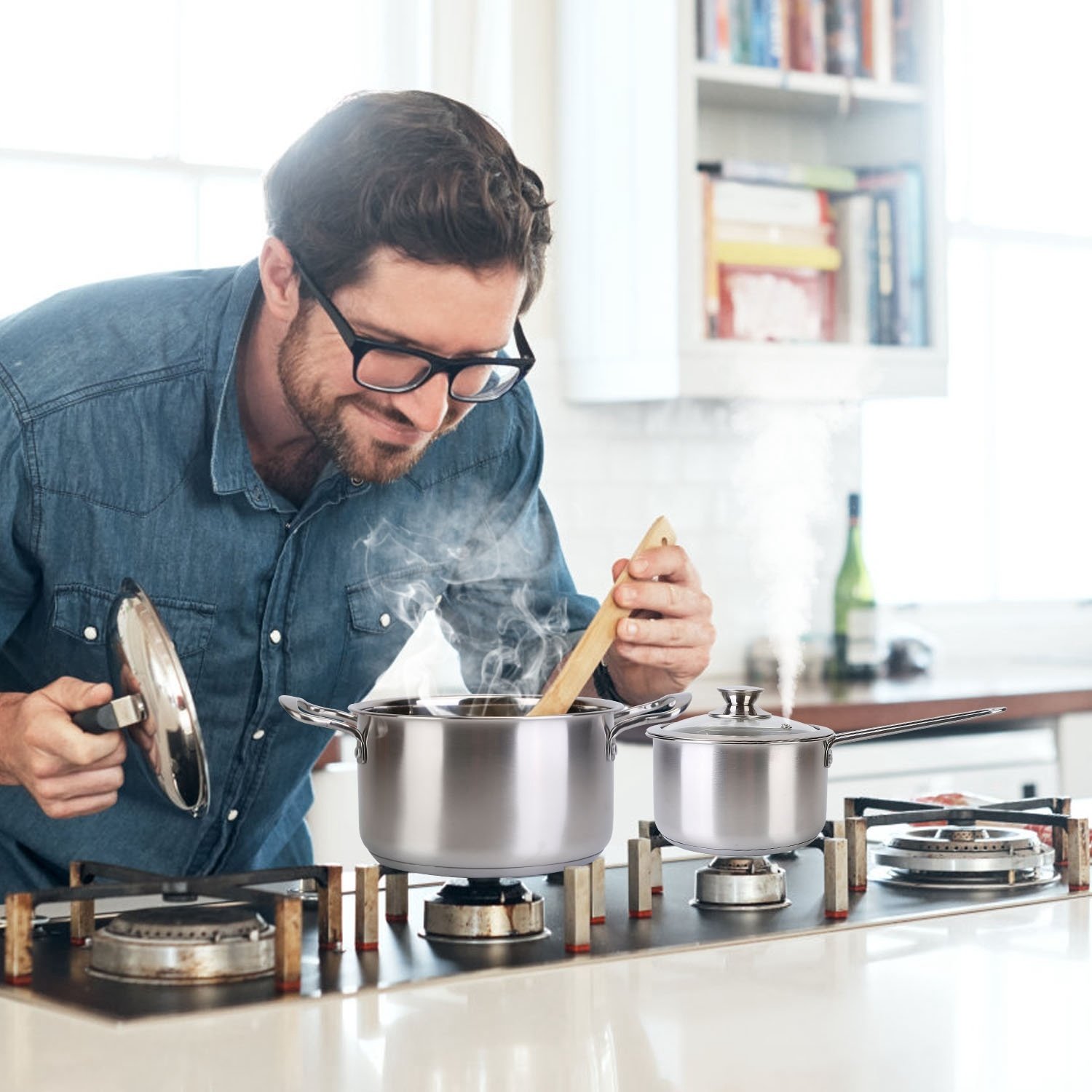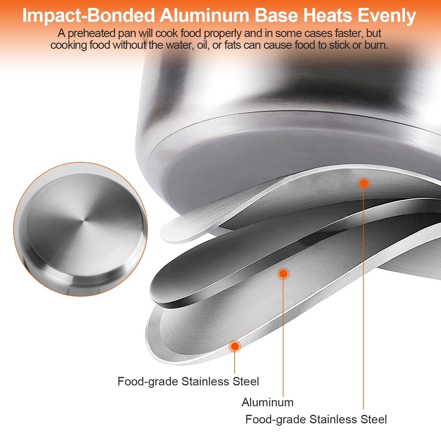 **Food Grade Cookware*: Made of premium food grade stainless steel and tempered glass lid materials; which maintains the flavor of the food. 3-Layer bottom with impact-bonded technology; built to last for a life time.