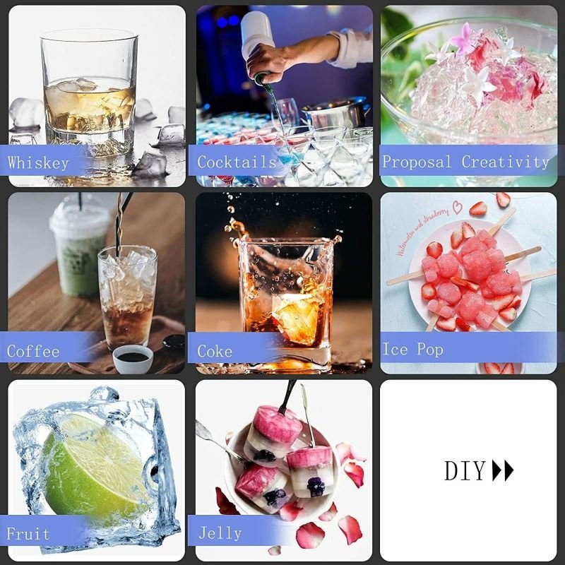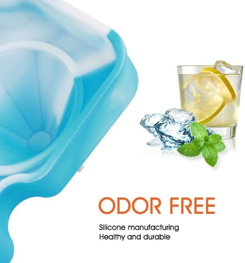 4 cavities ice cube trays design makes all the interaction very practical and secure. With the incredible flexibility of durable silicone; you may twist; push; and release ice diamonds easily.